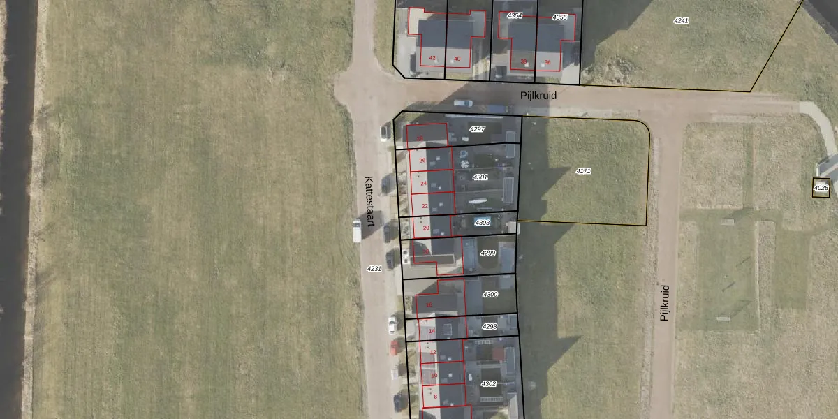 Het perceel waarop Kattestaart 22 staat heeft een oppervlakte van 474 m². Dit is een groot perceel. De perceeloppervlakte wordt geregistreerd door het Kadaster. Gedetailleerde informatie over de maten van dit perceel kunt u vinden in het rapport Kadastrale kaart met maatvoering van Kattestaart 22.