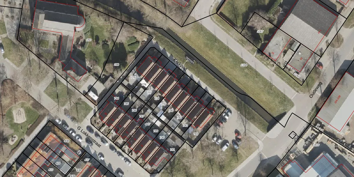 Gebruik de zoekbalk of klik op een perceel voor informatie over de adressen binnen dit perceel.