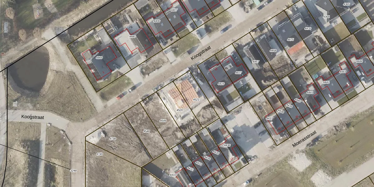 Het perceel waarop Koogstraat 10 staat heeft een oppervlakte van 316 m². Dit is een groot perceel. De perceeloppervlakte wordt geregistreerd door het Kadaster. Gedetailleerde informatie over de maten van dit perceel kunt u vinden in het rapport Kadastrale kaart met maatvoering van Koogstraat 10.