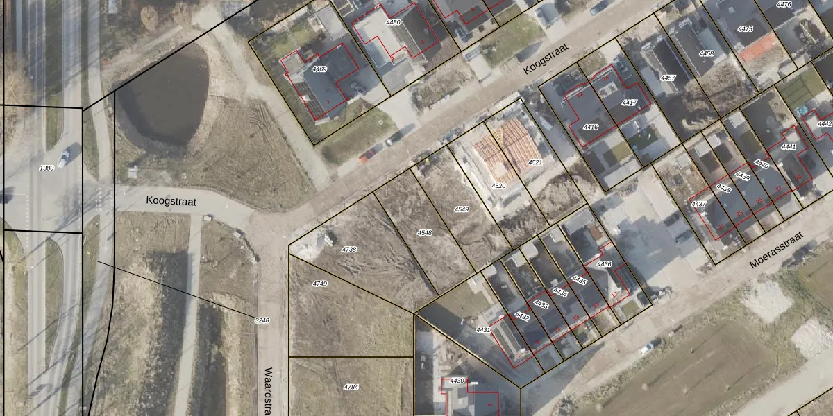 Koogstraat 4 is gelegen op kadastraal perceel NOP00B4548. Deze kadastrale aanduiding is uniek en wordt gebruikt door het Kadaster om eigendomsrechten en andere zakelijke rechten vast te leggen. Het perceel maakt onderdeel uit van de kadastrale gemeente Noordoostpolder.