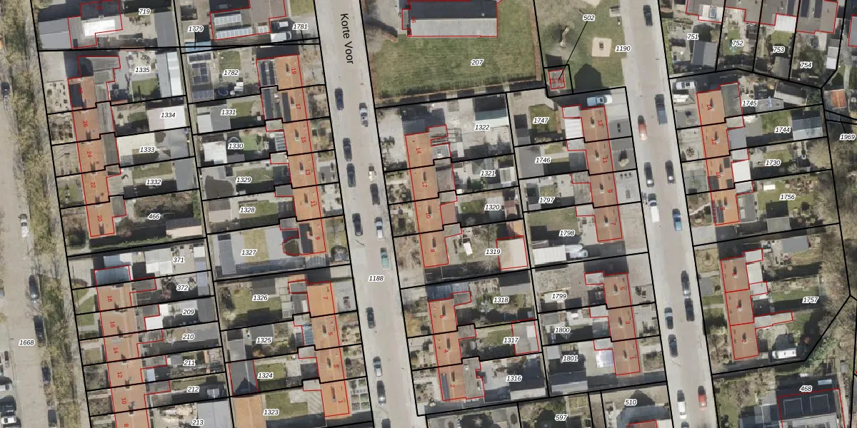 Het perceel waarop Korte Voor 10 staat heeft een oppervlakte van 236 m². Dit is een middelgroot perceel. De perceeloppervlakte wordt geregistreerd door het Kadaster. Gedetailleerde informatie over de maten van dit perceel kunt u vinden in het rapport Kadastrale kaart met maatvoering van Korte Voor 10.