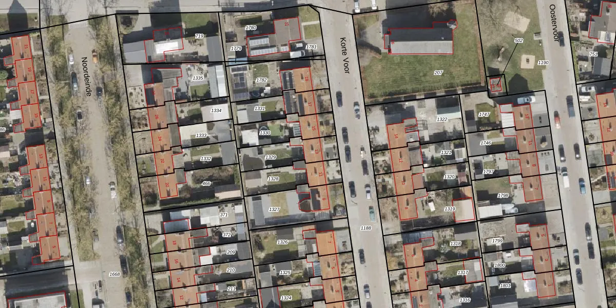 Korte Voor 13 is gelegen op kadastraal perceel NOP00BZ1329. Deze kadastrale aanduiding is uniek en wordt gebruikt door het Kadaster om eigendomsrechten en andere zakelijke rechten vast te leggen. Het perceel maakt onderdeel uit van de kadastrale gemeente Noordoostpolder.