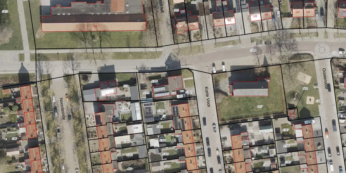 Gebruik de zoekbalk of klik op een perceel voor informatie over de adressen binnen dit perceel.