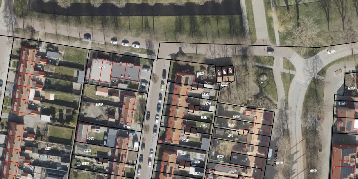 Het adres is gelegen op perceel 1355 in de sectie BZ en de kadastrale gemeente Noordoostpolder. De kadastrale aanduiding is aldus NOP00-BZ-1355. De gemiddelde perceelgrootte in Noordoostpolder is 2,1 ha. Dit perceel is kleiner: de perceeloppervlakte bedraagt 187 m². De grootste perceeloppervlakte in de kadastrale gemeente is 47,42 km². De kleinste oppervlakte bedraagt 0 m². Dit is het enige adres dat aanwezig is op het perceel. De huidige grenzen van het perceel zijn digitaal in de Basisregistratie Kadaster (BRK) geregistreerd op 07-12-1999.