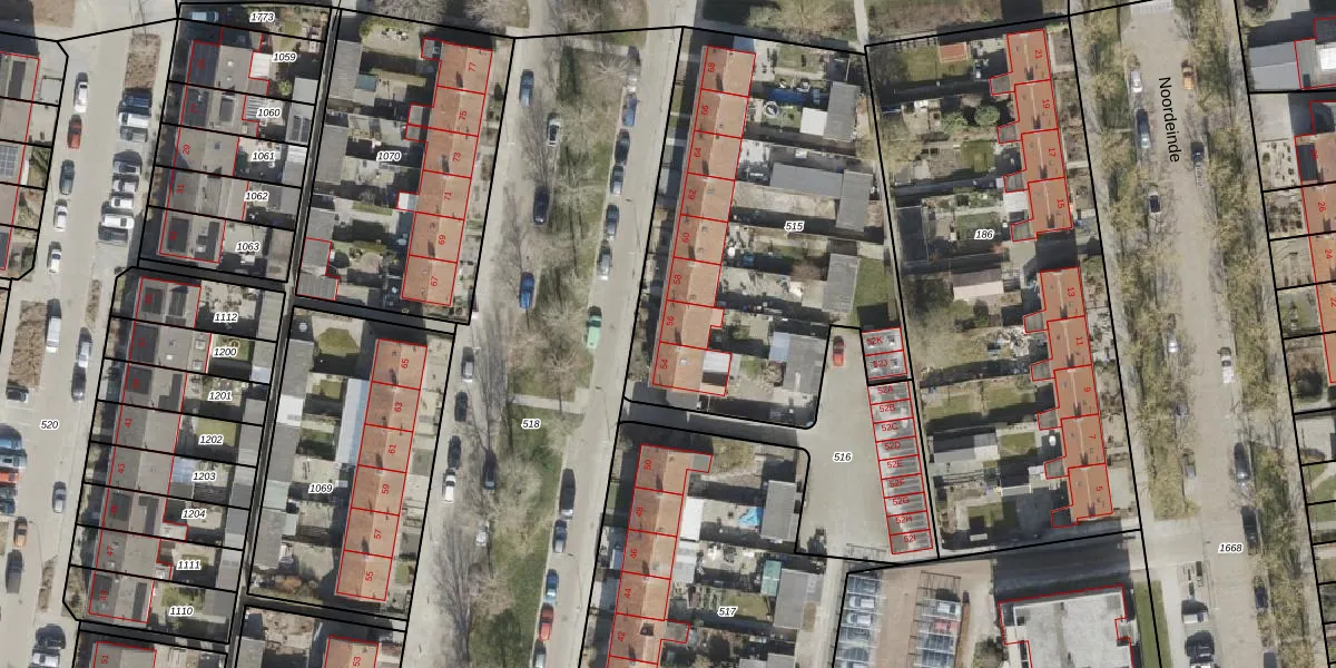 Het adres is gelegen op perceel 515 in de sectie BZ en de kadastrale gemeente Noordoostpolder. De kadastrale aanduiding is aldus NOP00-BZ-515. De gemiddelde perceelgrootte in Noordoostpolder is 2,1 ha. Dit perceel is kleiner: de perceeloppervlakte bedraagt 1890 m². De grootste perceeloppervlakte in de kadastrale gemeente is 47,42 km². De kleinste oppervlakte bedraagt 0 m². Op het perceel zijn 10 adressen aanwezig. De laatste wijziging in het de Basisregistratie Kadaster (BRK) was op 29-08-2001.