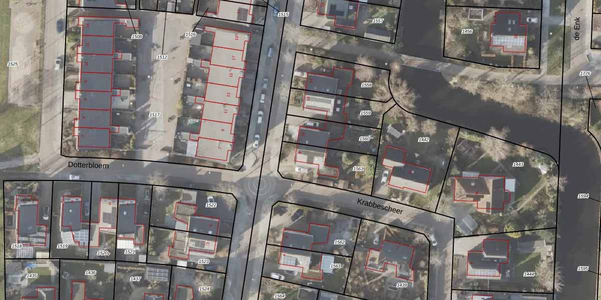 Het adres is gelegen op perceel 1561 in de sectie BZ en de kadastrale gemeente Noordoostpolder. De kadastrale aanduiding is aldus NOP00-BZ-1561. De gemiddelde perceelgrootte in Noordoostpolder is 2,1 ha. Dit perceel is kleiner: de perceeloppervlakte bedraagt 400 m². Het grootste perceel in de kadastrale gemeente is 47,42 km². Het kleinste perceel heeft een oppervlakte van 0 m². Dit is het enige adres dat aanwezig is op het perceel. De huidige grenzen van het perceel zijn digitaal in de Basisregistratie Kadaster (BRK) geregistreerd op 30-01-2001.