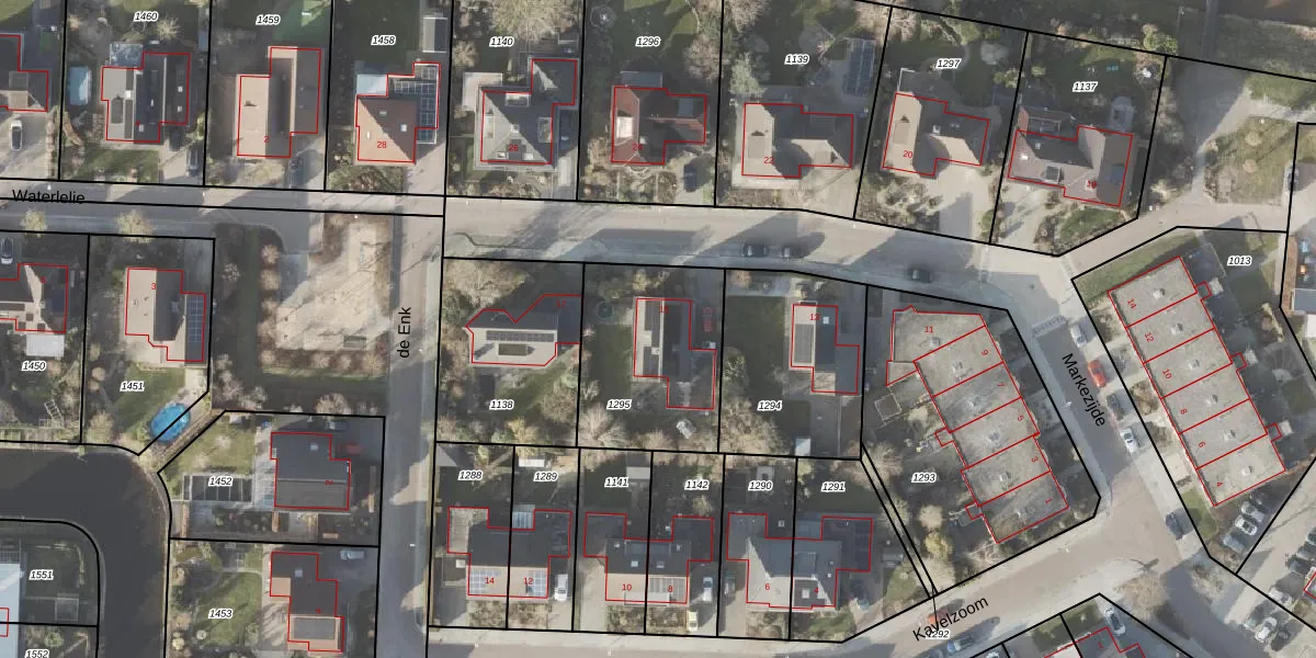 Het perceel waarop Markezijde 15 staat heeft een oppervlakte van 604 m². Dit is een groot perceel. De perceeloppervlakte wordt geregistreerd door het Kadaster. Gedetailleerde informatie over de maten van dit perceel kunt u vinden in het rapport Kadastrale kaart met maatvoering van Markezijde 15.
