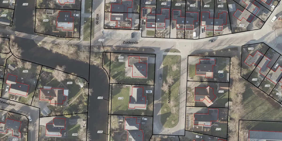 Gebruik de zoekbalk of klik op een perceel voor informatie over de adressen binnen dit perceel.