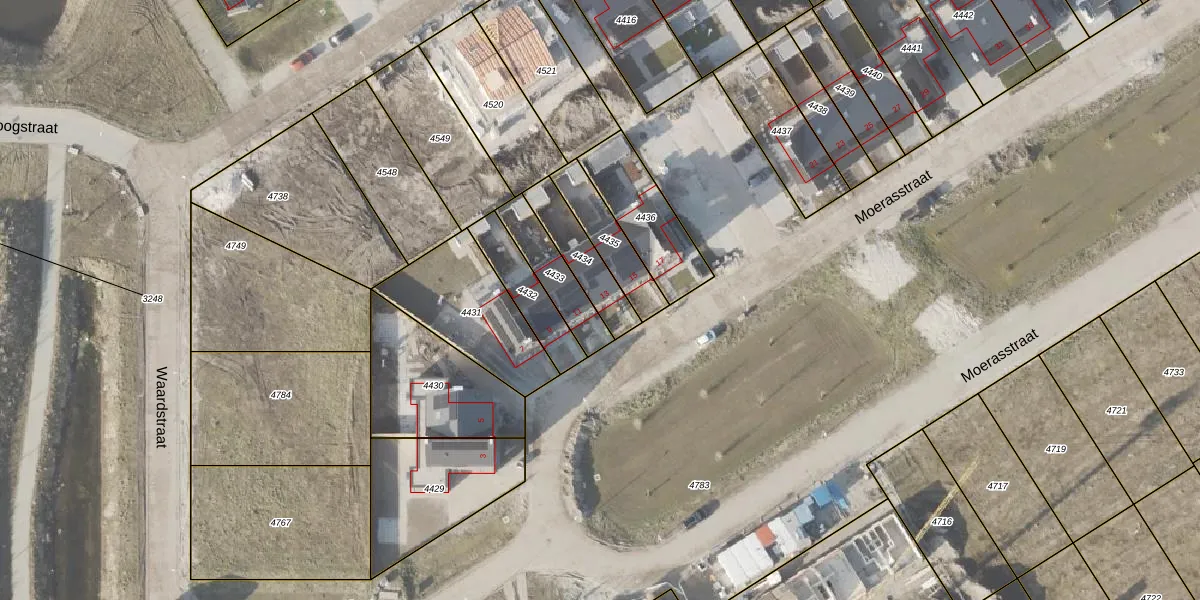 Moerasstraat 13 is gelegen op kadastraal perceel NOP00B4434. Deze kadastrale aanduiding is uniek en wordt gebruikt door het Kadaster om eigendomsrechten en andere zakelijke rechten vast te leggen. Het perceel maakt onderdeel uit van de kadastrale gemeente Noordoostpolder.
