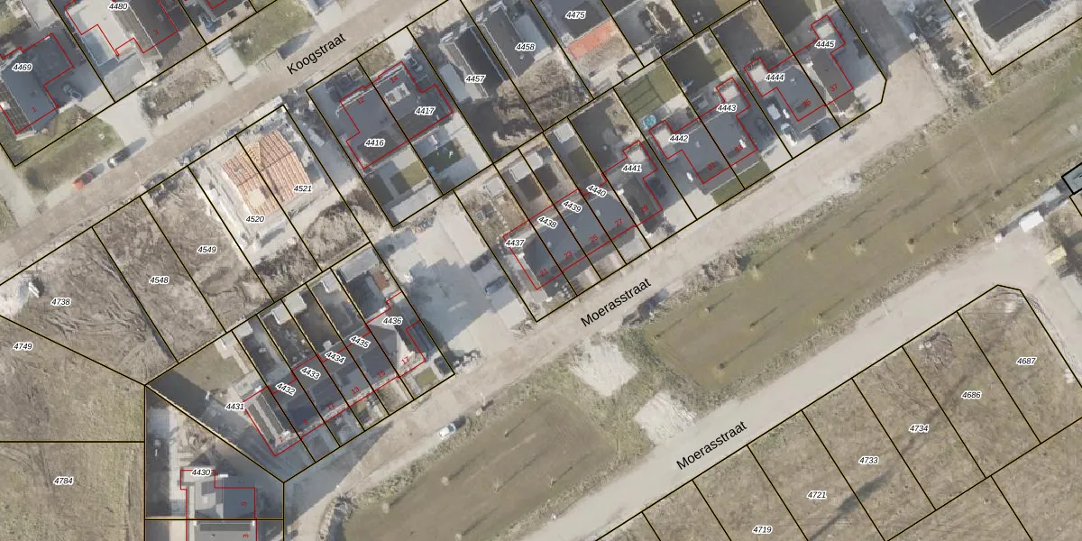 Moerasstraat 21 is gelegen op kadastraal perceel NOP00B4437. Deze kadastrale aanduiding is uniek en wordt gebruikt door het Kadaster om eigendomsrechten en andere zakelijke rechten vast te leggen. Het perceel maakt onderdeel uit van de kadastrale gemeente Noordoostpolder.