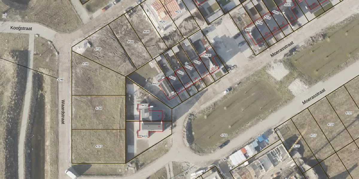 Moerasstraat 9 is gelegen op kadastraal perceel NOP00B4432. Deze kadastrale aanduiding is uniek en wordt gebruikt door het Kadaster om eigendomsrechten en andere zakelijke rechten vast te leggen. Het perceel maakt onderdeel uit van de kadastrale gemeente Noordoostpolder.