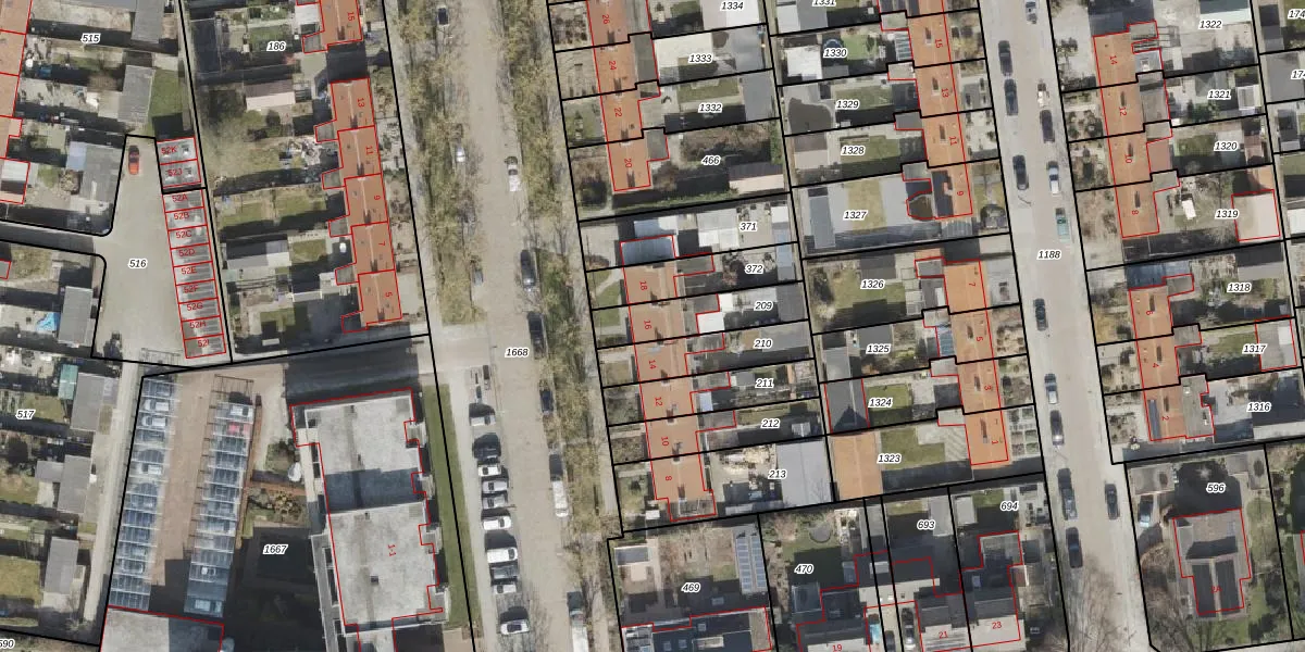 Het adres is gelegen op perceel 209 in de sectie BZ en de kadastrale gemeente Noordoostpolder. De kadastrale aanduiding is aldus NOP00-BZ-209. De gemiddelde perceelgrootte in Noordoostpolder is 2,1 ha. Dit perceel is kleiner: de perceeloppervlakte bedraagt 198 m². Het kleinste perceel in de kadastrale gemeente is 0 m² groot. De grootste perceeloppervlakte is 47,42 km². Dit is het enige adres dat aanwezig is op het perceel. In de Basisregistratie Kadaster (BRK) werden de grenzen van het perceel geregistreerd op 03-02-2005.