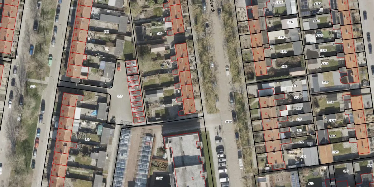 Het adres is gelegen op perceel 186 in de sectie BZ en de kadastrale gemeente Noordoostpolder. De kadastrale aanduiding is aldus NOP00-BZ-186. De gemiddelde perceelgrootte in Noordoostpolder is 2,1 ha. Dit perceel is kleiner: de perceeloppervlakte bedraagt 2384 m². Het kleinste perceel in de kadastrale gemeente is 0 m² groot. De grootste perceeloppervlakte is 47,42 km². Op het perceel liggen in totaal 9 adressen. In de Basisregistratie Kadaster (BRK) werden de grenzen van het perceel geregistreerd op 03-02-2005.