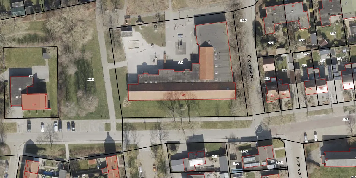 Het perceel waarop Noordzoom 119 staat heeft een oppervlakte van 3845 m². Dit is een zeer groot perceel. De perceeloppervlakte wordt geregistreerd door het Kadaster. Gedetailleerde informatie over de maten van dit perceel kunt u vinden in het rapport Kadastrale kaart met maatvoering van Noordzoom 119.