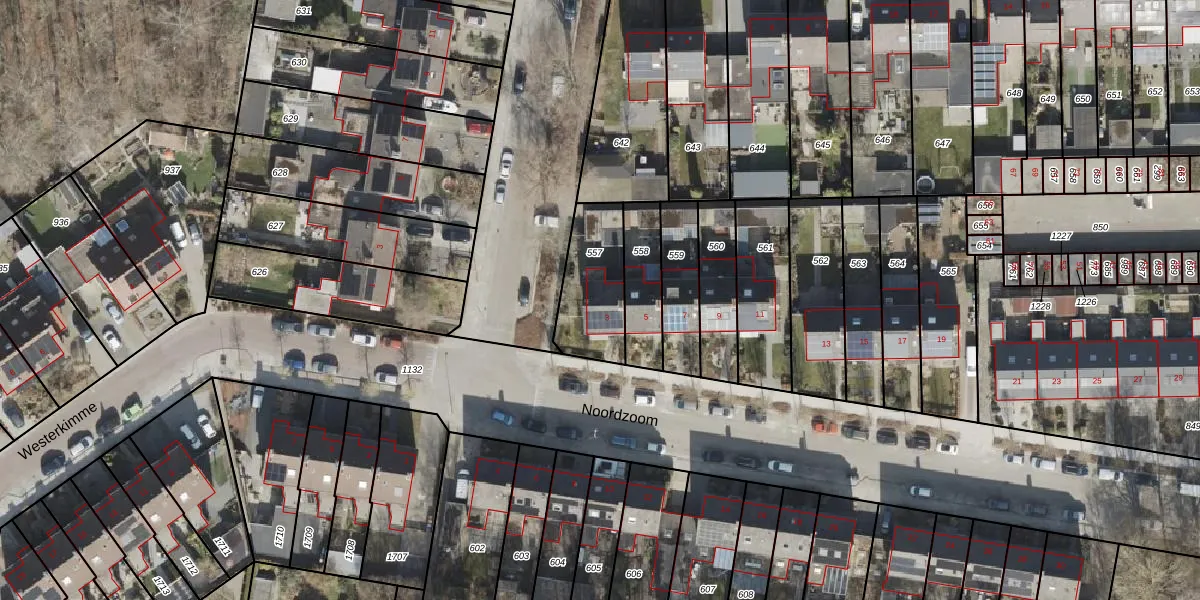 Gebruik de zoekbalk of klik op een perceel voor informatie over de adressen binnen dit perceel.