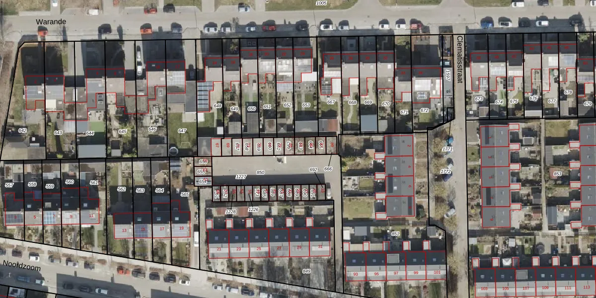 Gebruik de zoekbalk of klik op een perceel voor informatie over de adressen binnen dit perceel.