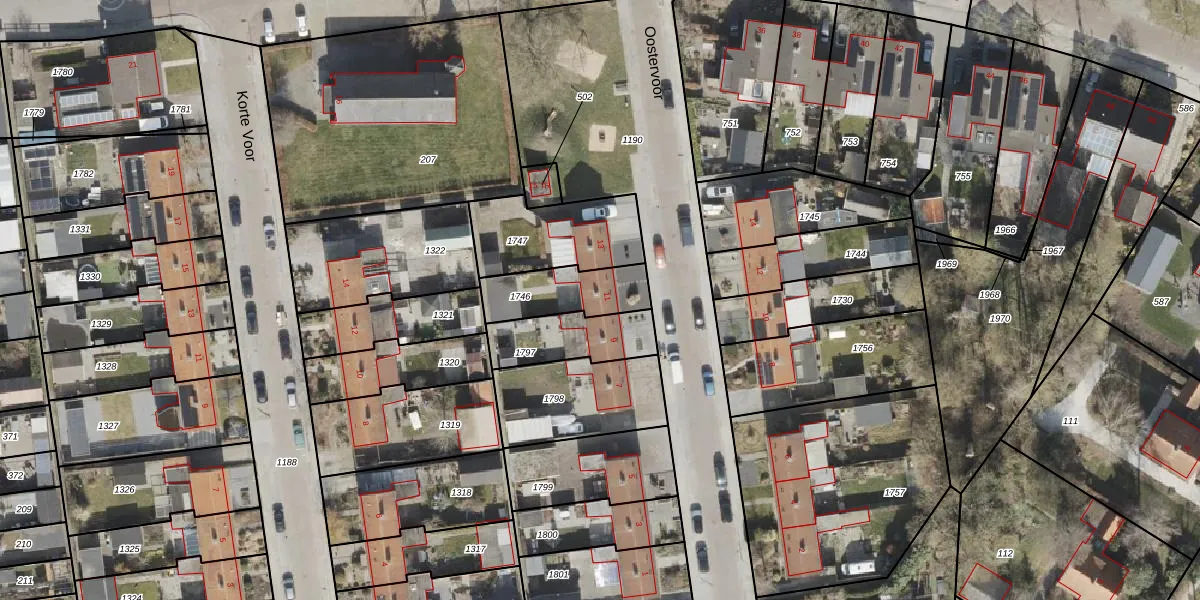 Het perceel waarop Oostervoor 11 staat heeft een oppervlakte van 215 m². Dit is een middelgroot perceel. De perceeloppervlakte wordt geregistreerd door het Kadaster. Gedetailleerde informatie over de maten van dit perceel kunt u vinden in het rapport Kadastrale kaart met maatvoering van Oostervoor 11.