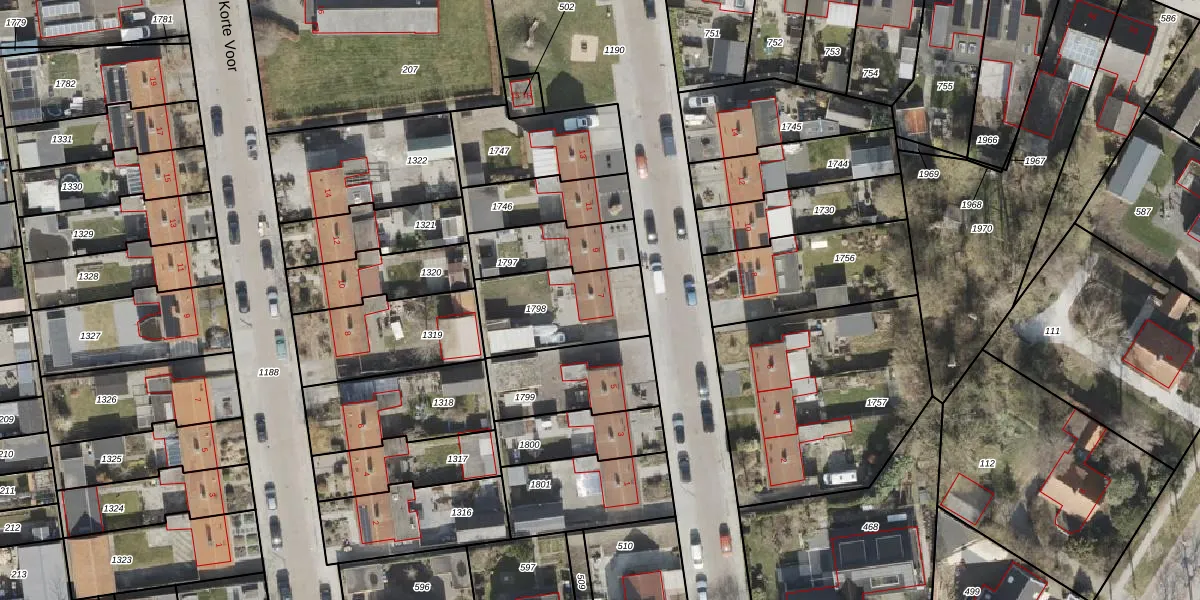 Het perceel waarop Oostervoor 7 staat heeft een oppervlakte van 353 m². Dit is een groot perceel. De perceeloppervlakte wordt geregistreerd door het Kadaster. Gedetailleerde informatie over de maten van dit perceel kunt u vinden in het rapport Kadastrale kaart met maatvoering van Oostervoor 7.