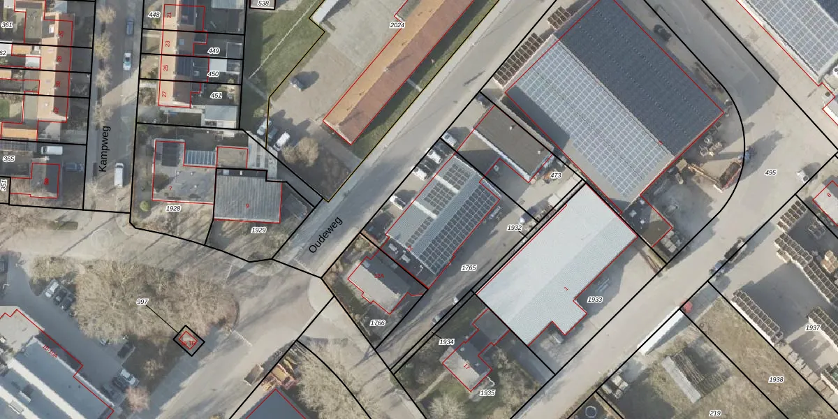 Het perceel waarop Oudeweg 12 staat heeft een oppervlakte van 1011 m². Dit is een zeer groot perceel. De perceeloppervlakte wordt geregistreerd door het Kadaster. Gedetailleerde informatie over de maten van dit perceel kunt u vinden in het rapport Kadastrale kaart met maatvoering van Oudeweg 12.