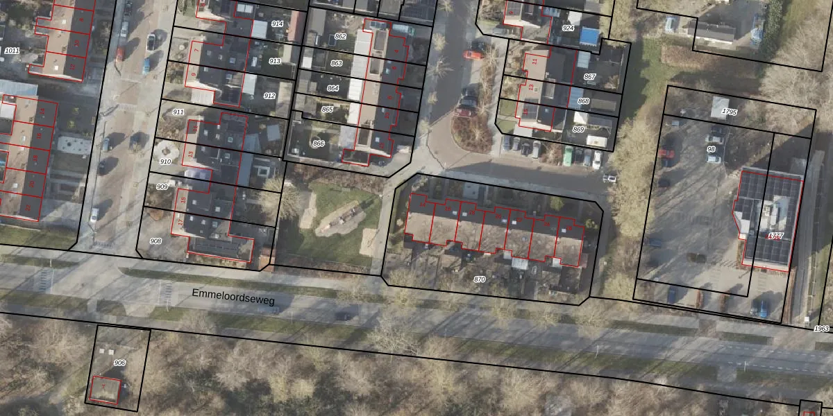 Het adres is gelegen op perceel 870 in de sectie BZ en de kadastrale gemeente Noordoostpolder. De kadastrale aanduiding is aldus NOP00-BZ-870. De gemiddelde perceelgrootte in Noordoostpolder is 2,1 ha. Dit perceel is kleiner: de perceeloppervlakte bedraagt 1307 m². Het grootste perceel in de kadastrale gemeente is 47,42 km². Het kleinste perceel heeft een oppervlakte van 0 m². Op het perceel liggen in totaal 7 adressen. De huidige grenzen van het perceel zijn digitaal in de Basisregistratie Kadaster (BRK) geregistreerd op 11-05-2007.