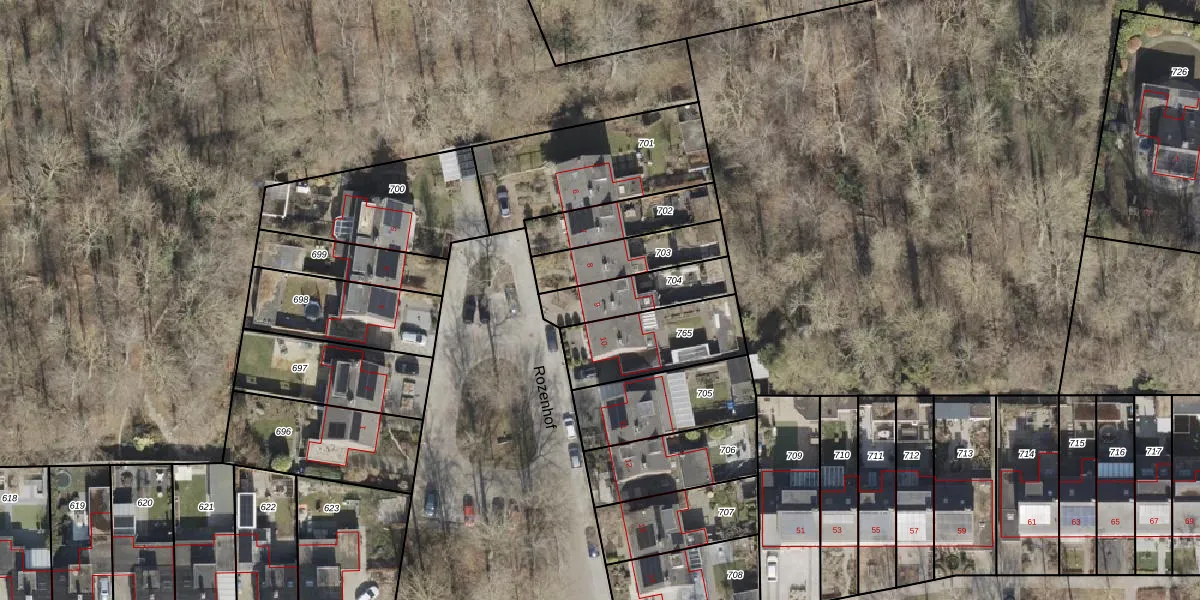 Gebruik de zoekbalk of klik op een perceel voor informatie over de adressen binnen dit perceel.