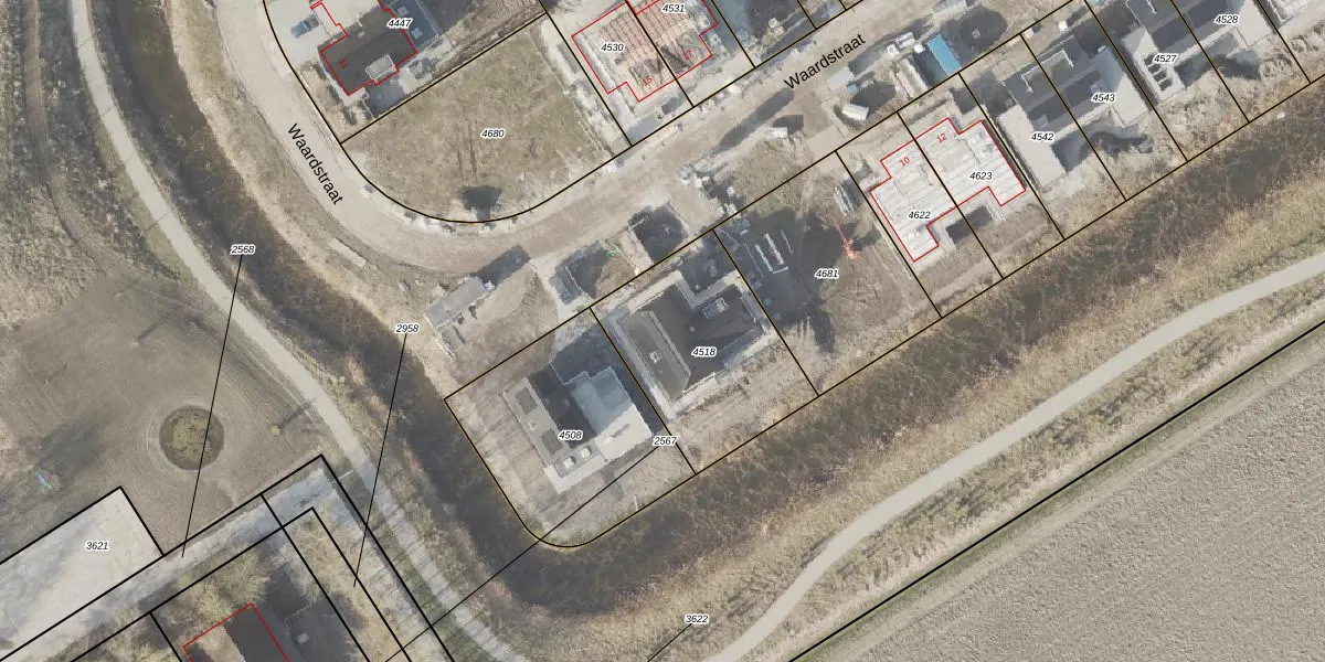 Waardstraat 4 is gelegen op kadastraal perceel NOP00B4518. Deze kadastrale aanduiding is uniek en wordt gebruikt door het Kadaster om eigendomsrechten en andere zakelijke rechten vast te leggen. Het perceel maakt onderdeel uit van de kadastrale gemeente Noordoostpolder.
