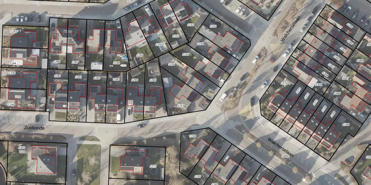 Het perceel waarop Walcherselaan 12 staat heeft een oppervlakte van 376 m². Dit is een groot perceel. De perceeloppervlakte wordt geregistreerd door het Kadaster. Gedetailleerde informatie over de maten van dit perceel kunt u vinden in het rapport Kadastrale kaart met maatvoering van Walcherselaan 12.