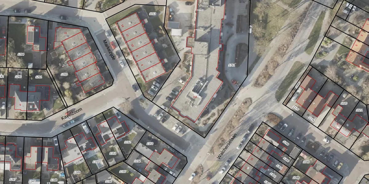 Het perceel waarop Walcherselaan 2-106 staat heeft een oppervlakte van 3230 m². Dit is een zeer groot perceel. De perceeloppervlakte wordt geregistreerd door het Kadaster. Gedetailleerde informatie over de maten van dit perceel kunt u vinden in het rapport Kadastrale kaart met maatvoering van Walcherselaan 2-106.