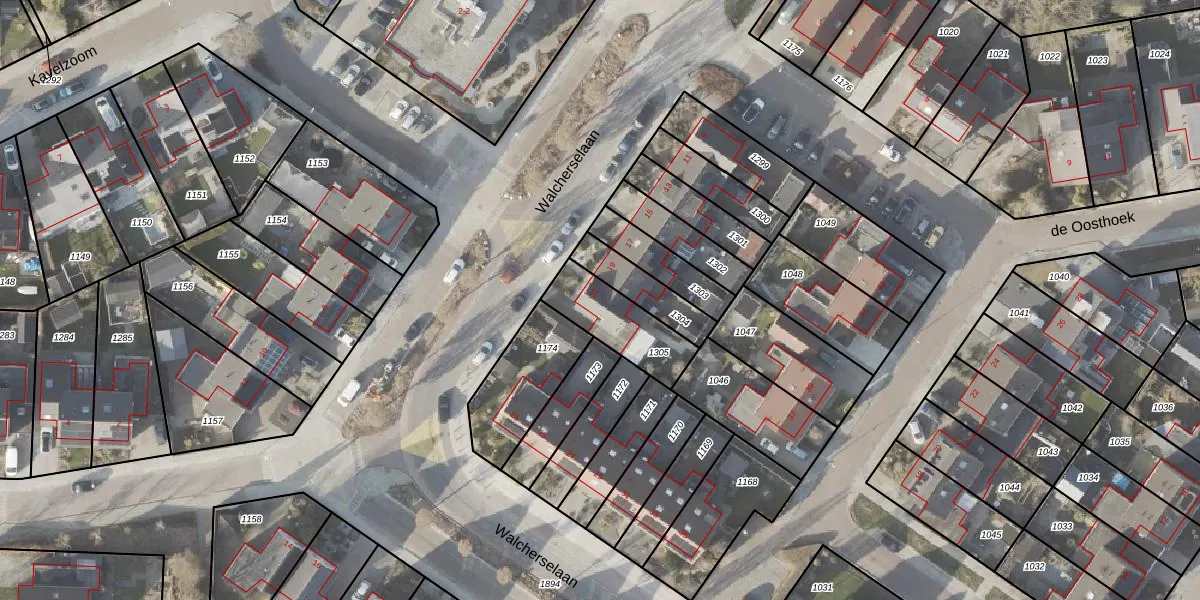 Gebruik de zoekbalk of klik op een perceel voor informatie over de adressen binnen dit perceel.