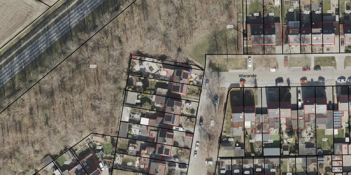 Het perceel waarop Warande 13 staat heeft een oppervlakte van 383 m². Dit is een groot perceel. De perceeloppervlakte wordt geregistreerd door het Kadaster. Gedetailleerde informatie over de maten van dit perceel kunt u vinden in het rapport Kadastrale kaart met maatvoering van Warande 13.
