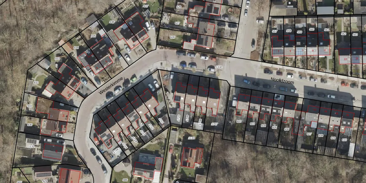 Gebruik de zoekbalk of klik op een perceel voor informatie over de adressen binnen dit perceel.