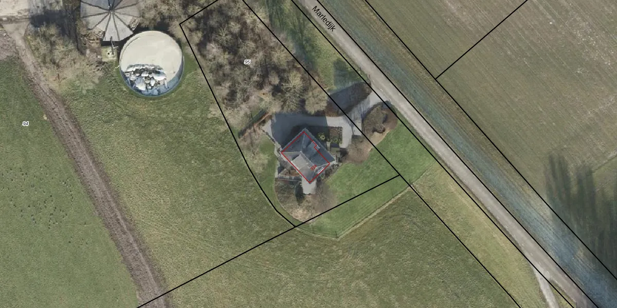 Het perceel waarop Marledijk 31-a staat heeft een oppervlakte van 2420 m². Dit is een zeer groot perceel. De perceeloppervlakte wordt geregistreerd door het Kadaster. Gedetailleerde informatie over de maten van dit perceel kunt u vinden in het rapport Kadastrale kaart met maatvoering van Marledijk 31-a.