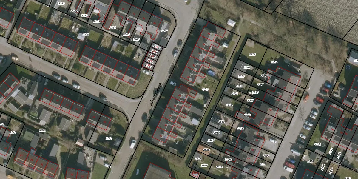 Het perceel waarop Julianastraat 38 staat heeft een oppervlakte van 1980 m². Dit is een zeer groot perceel. De perceeloppervlakte wordt geregistreerd door het Kadaster. Gedetailleerde informatie over de maten van dit perceel kunt u vinden in het rapport Kadastrale kaart met maatvoering van Julianastraat 38.