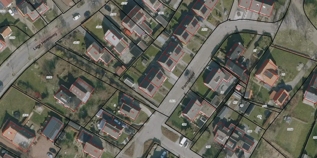 Het perceel waarop Pantsjewier 20 staat heeft een oppervlakte van 2542 m². Dit is een zeer groot perceel. De perceeloppervlakte wordt geregistreerd door het Kadaster. Gedetailleerde informatie over de maten van dit perceel kunt u vinden in het rapport Kadastrale kaart met maatvoering van Pantsjewier 20.