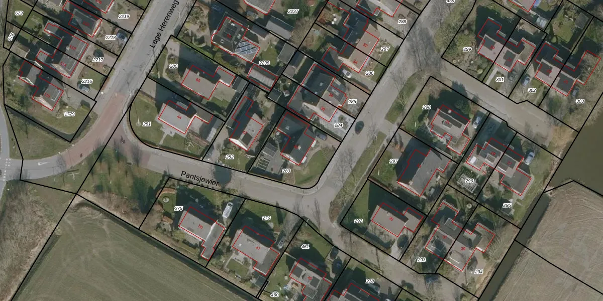 Het perceel waarop Pantsjewier 40 staat heeft een oppervlakte van 470 m². Dit is een groot perceel. De perceeloppervlakte wordt geregistreerd door het Kadaster. Gedetailleerde informatie over de maten van dit perceel kunt u vinden in het rapport Kadastrale kaart met maatvoering van Pantsjewier 40.