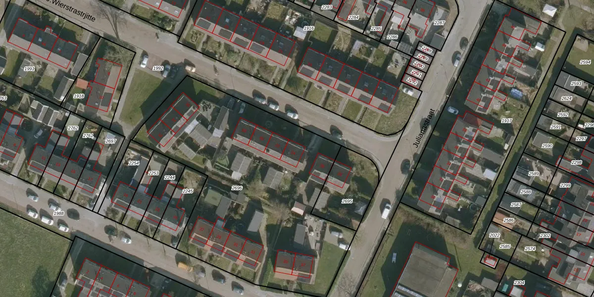 Het perceel waarop P.J.Wierstrastrjitte 24 staat heeft een oppervlakte van 3151 m². Dit is een zeer groot perceel. De perceeloppervlakte wordt geregistreerd door het Kadaster. Gedetailleerde informatie over de maten van dit perceel kunt u vinden in het rapport Kadastrale kaart met maatvoering van P.J.Wierstrastrjitte 24.