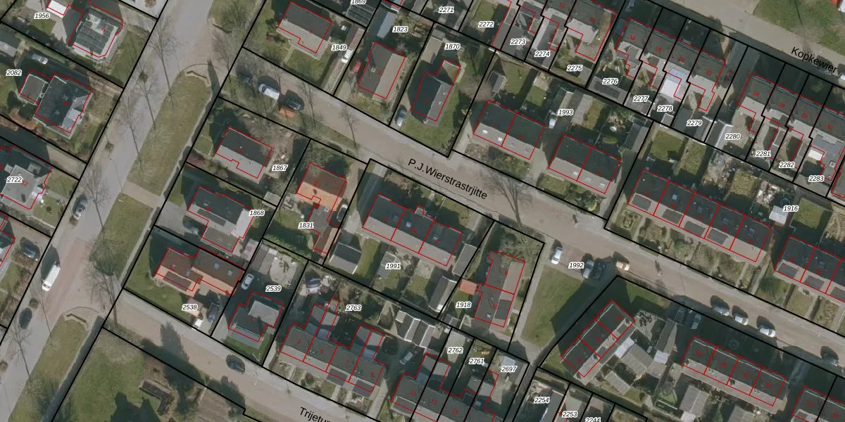 Het perceel waarop P.J.Wierstrastrjitte 4-A staat heeft een oppervlakte van 885 m². Dit is een groot perceel. De perceeloppervlakte wordt geregistreerd door het Kadaster. Gedetailleerde informatie over de maten van dit perceel kunt u vinden in het rapport Kadastrale kaart met maatvoering van P.J.Wierstrastrjitte 4-A.