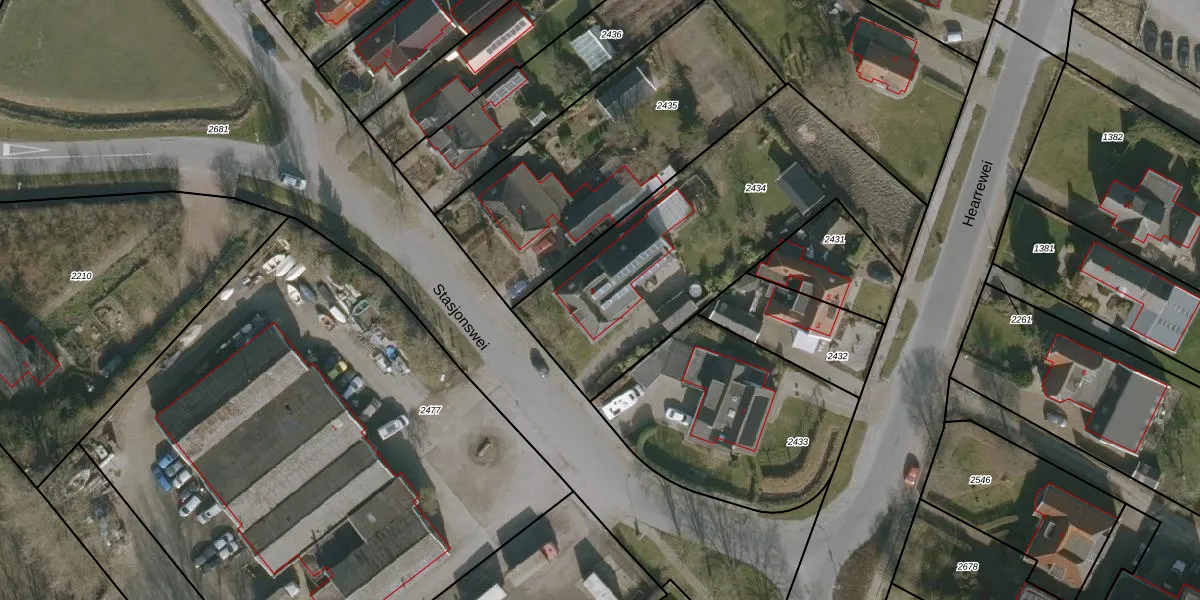 Het perceel waarop Stasjonswei 2 staat heeft een oppervlakte van 1363 m². Dit is een zeer groot perceel. De perceeloppervlakte wordt geregistreerd door het Kadaster. Gedetailleerde informatie over de maten van dit perceel kunt u vinden in het rapport Kadastrale kaart met maatvoering van Stasjonswei 2.