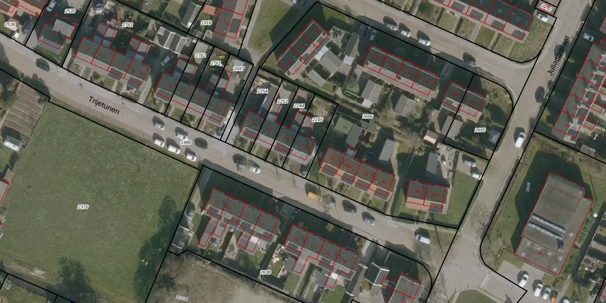 Het perceel waarop Trijetunen 25 staat heeft een oppervlakte van 225 m². Dit is een middelgroot perceel. De perceeloppervlakte wordt geregistreerd door het Kadaster. Gedetailleerde informatie over de maten van dit perceel kunt u vinden in het rapport Kadastrale kaart met maatvoering van Trijetunen 25.