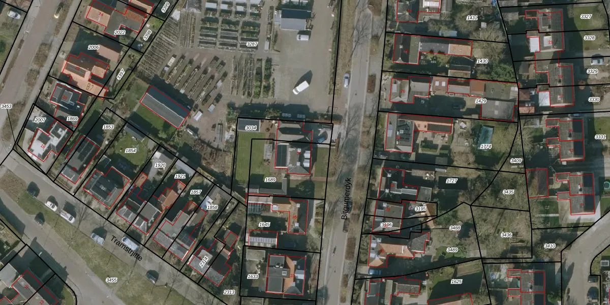 Het perceel waarop Bitgumerdyk 37 staat heeft een oppervlakte van 468 m². Dit is een groot perceel. De perceeloppervlakte wordt geregistreerd door het Kadaster. Gedetailleerde informatie over de maten van dit perceel kunt u vinden in het rapport Kadastrale kaart met maatvoering van Bitgumerdyk 37.