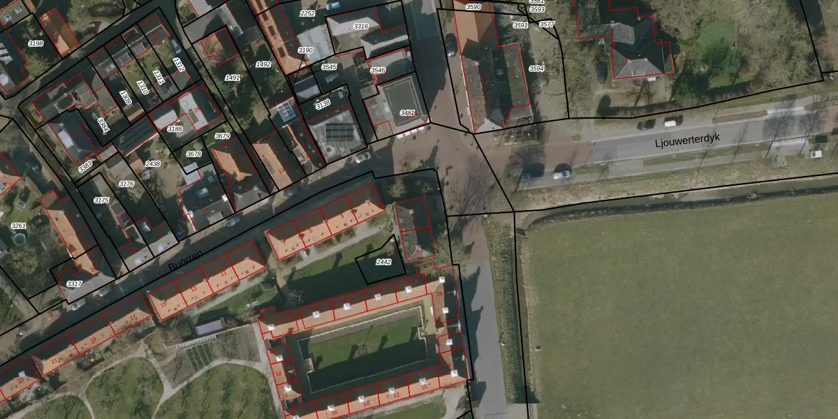 Het adres ligt op het perceel DNM00-A-2437, dat zich in de kadastrale gemeente Deinum bevindt. De oppervlakte van het perceel is 9950 m². Dat is groter dan gemiddeld in Deinum, waar de gemiddelde perceeloppervlakte op 6613,82 m² ligt. De grootste perceeloppervlakte in de kadastrale gemeente is 13,8 ha. De kleinste oppervlakte bedraagt 0 m². Er zijn 31 adressen aanwezig op het perceel. In de Basisregistratie Kadaster (BRK) werden de grenzen van het perceel geregistreerd op 15-01-1998.