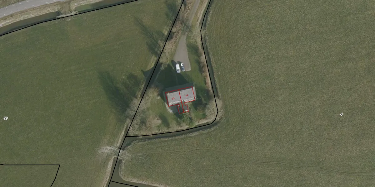 It Aldlân 14 is gelegen op kadastraal perceel DNM00F3. Deze kadastrale aanduiding is uniek en wordt gebruikt door het Kadaster om eigendomsrechten en andere zakelijke rechten vast te leggen. Het perceel maakt onderdeel uit van de kadastrale gemeente Deinum.