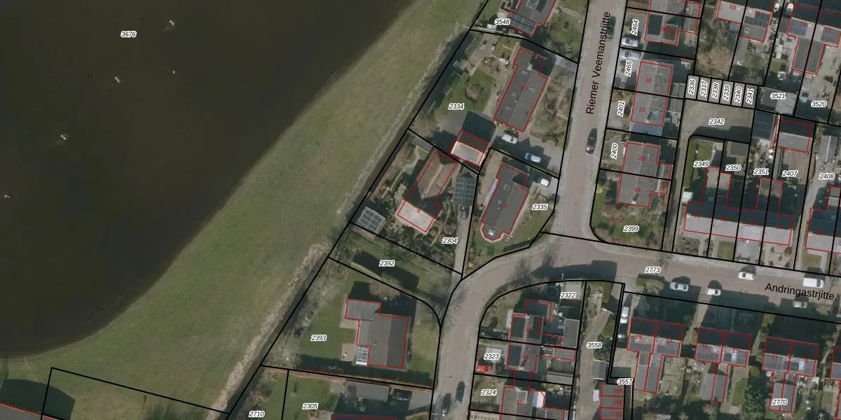 Het perceel waarop Riemer Veemanstrjitte 9 staat heeft een oppervlakte van 605 m². Dit is een groot perceel. De perceeloppervlakte wordt geregistreerd door het Kadaster. Gedetailleerde informatie over de maten van dit perceel kunt u vinden in het rapport Kadastrale kaart met maatvoering van Riemer Veemanstrjitte 9.