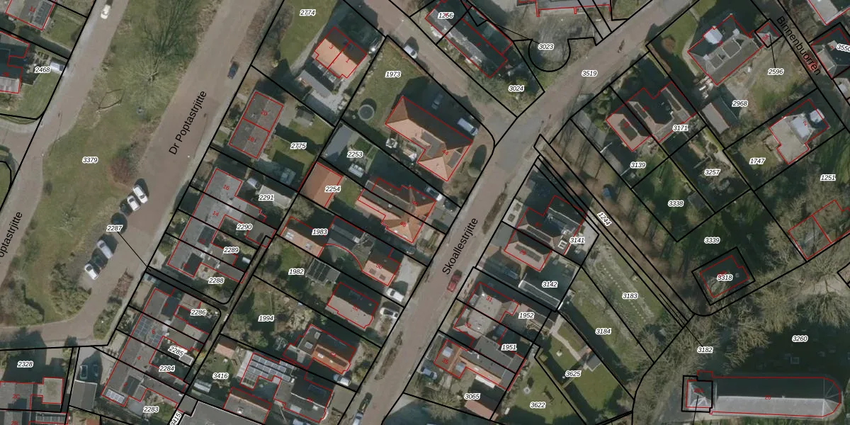 Het perceel waarop Skoallestrjitte 46 staat heeft een oppervlakte van 317 m². Dit is een groot perceel. De perceeloppervlakte wordt geregistreerd door het Kadaster. Gedetailleerde informatie over de maten van dit perceel kunt u vinden in het rapport Kadastrale kaart met maatvoering van Skoallestrjitte 46.