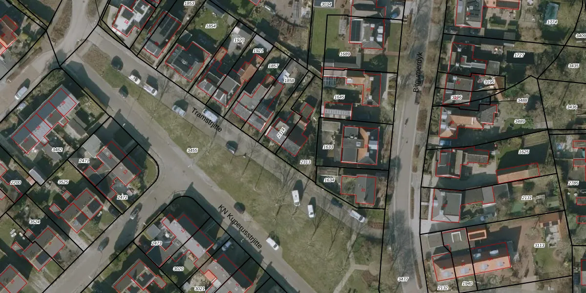 Gebruik de zoekbalk of klik op een perceel voor informatie over de adressen binnen dit perceel.