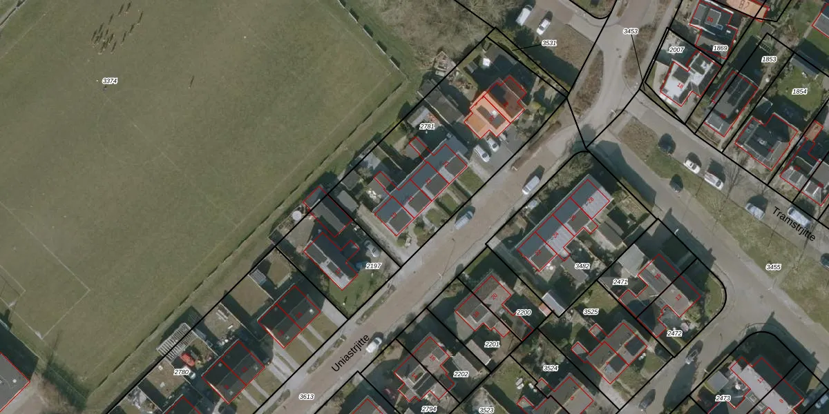 Het perceel waarop Uniastrjitte 21 staat heeft een oppervlakte van 1400 m². Dit is een zeer groot perceel. De perceeloppervlakte wordt geregistreerd door het Kadaster. Gedetailleerde informatie over de maten van dit perceel kunt u vinden in het rapport Kadastrale kaart met maatvoering van Uniastrjitte 21.