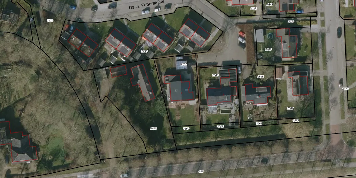Gebruik de zoekbalk of klik op een perceel voor informatie over de adressen binnen dit perceel.