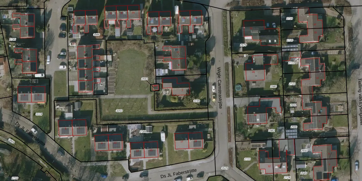 Het perceel waarop Wigle Camstrastrjitte 7 staat heeft een oppervlakte van 530 m². Dit is een groot perceel. De perceeloppervlakte wordt geregistreerd door het Kadaster. Gedetailleerde informatie over de maten van dit perceel kunt u vinden in het rapport Kadastrale kaart met maatvoering van Wigle Camstrastrjitte 7.