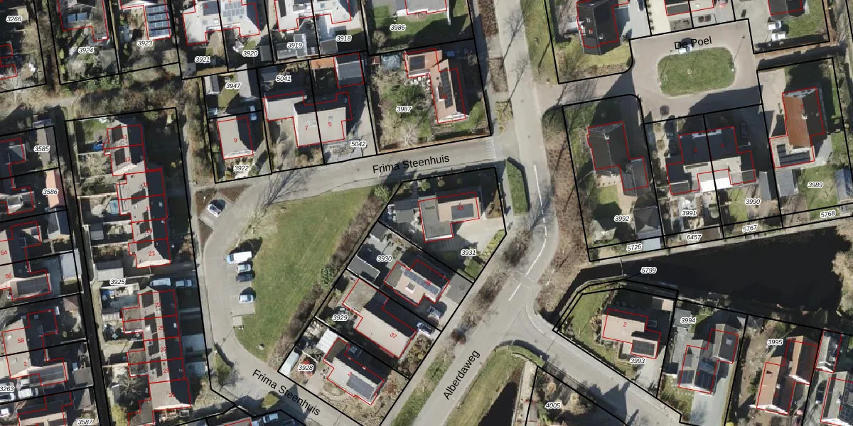 Alberdaweg 33 is gelegen op kadastraal perceel MRM01F3931. Deze kadastrale aanduiding is uniek en wordt gebruikt door het Kadaster om eigendomsrechten en andere zakelijke rechten vast te leggen. Het perceel maakt onderdeel uit van de kadastrale gemeente Marum.
