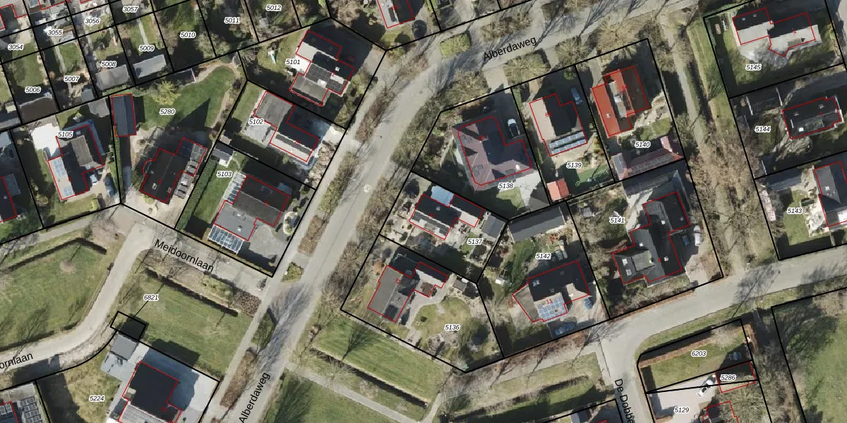 Het perceel waarop Alberdaweg 70 staat heeft een oppervlakte van 435 m². Dit is een groot perceel. De perceeloppervlakte wordt geregistreerd door het Kadaster. Gedetailleerde informatie over de maten van dit perceel kunt u vinden in het rapport Kadastrale kaart met maatvoering van Alberdaweg 70.